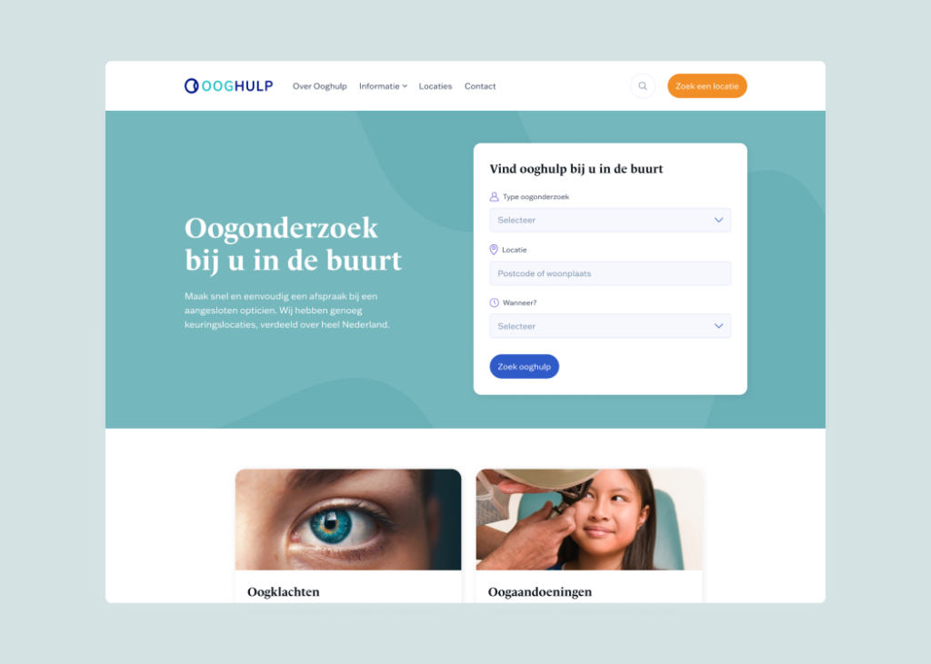 Het is van belang om de optometristen in contact te brengen met de bezoekers en vice versa. Hierbij ontwikkelden we een intuïtief ontwerp, waarin je gebaseerd op locatie eenvoudig de beste zorgverlener kan vinden in jouw regio.